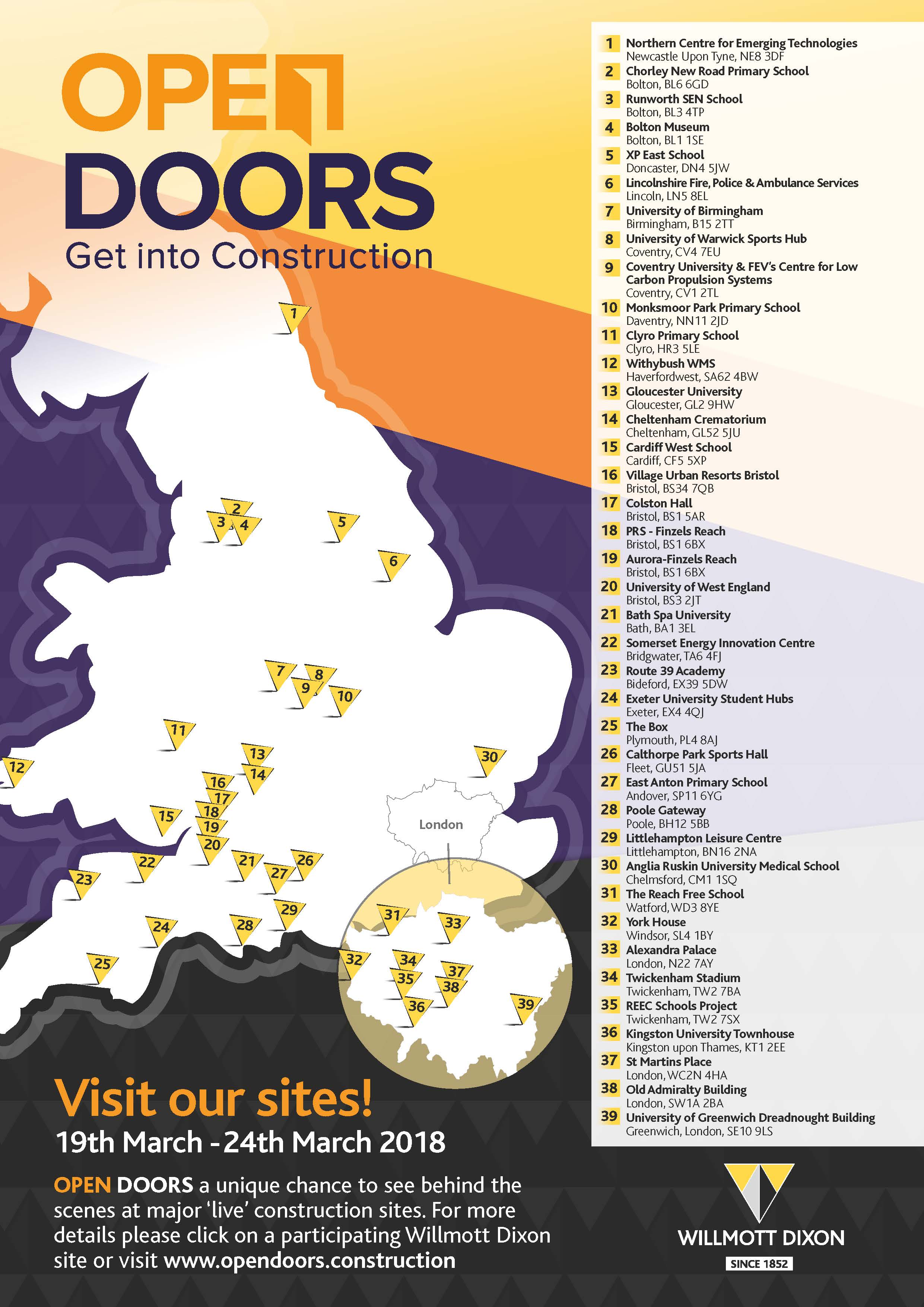 Willmott Dixon is opening a record 39 sites, including historic buildings such as Alexandra Palace and Old Admiralty Building and iconic rock venue Colston Hall to name a few!